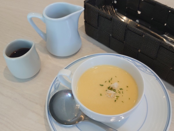 まろやかな甘みのコーンスープでイブクロを落ち着けて。