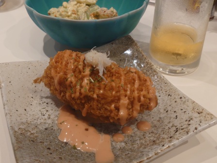 サクサクに揚がったコロッケに、カニの身をトッピング。