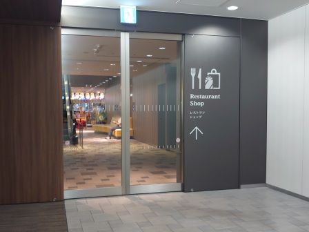 階段を下りて、駐車場とは反対方向にレストランへの入り口があります。