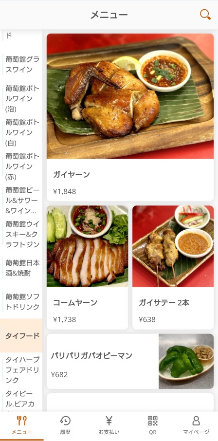 スタッフにタイ料理のメニューを持ってきてもらうようお願いしたところ、「スマホから見られますよ」と。