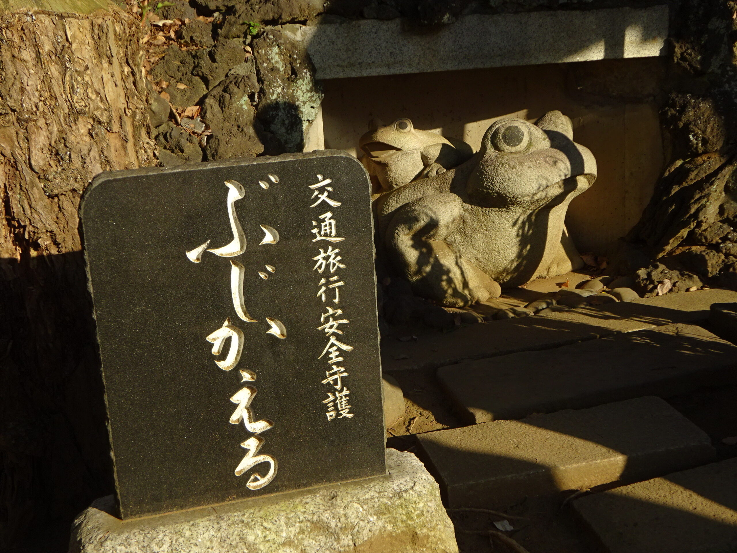 また、麓に鎮座するカエルの石像は「富士」と「かえる」をかけて「無事、帰る」という意味なんですって。