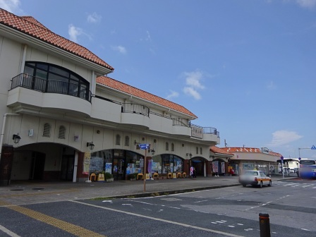 オレンジ色の瓦屋根が南国チックな館山駅に降り立ちます。