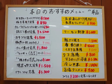 また、壁のホワイトボードには、本日のおすすめメニューがマグネットではってあります。