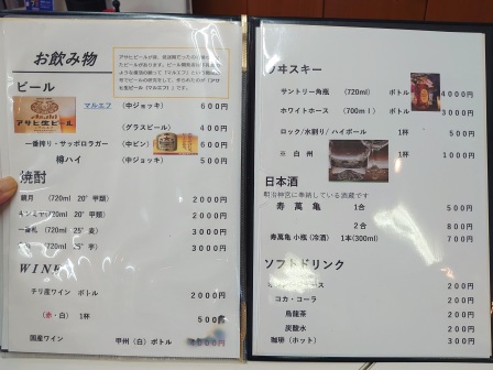 アルコールはビール、焼酎、ワイン、ウイスキー、日本酒をひととおり網羅。