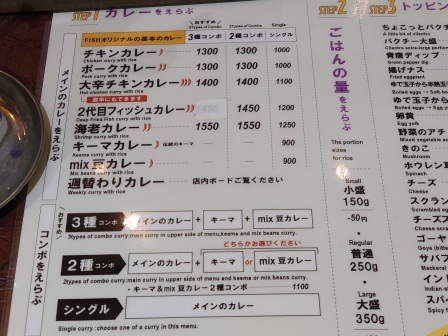 スパイス系が恋しくて、お昼にタイ料理のお弁当(以前に同じ店の同じメニューをアップしているので割愛)を食べたものの、不完全燃焼感が否めず、最近目を付けたカレーの店でゴスペルレッスン前の腹ごしらえをしようと決めました。