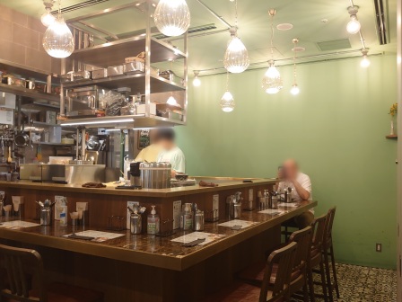 厨房を囲むコの字型のカウンターに11席が設けられています。