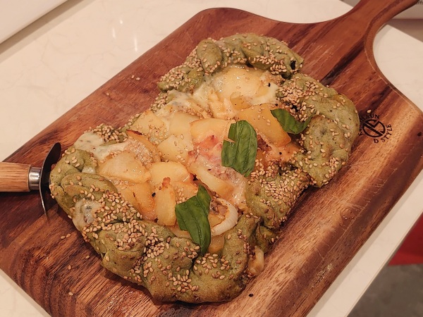 ユネスコの無形文化遺産にも登録されているフティーラというパンを使った、モチモチ系のピザ。