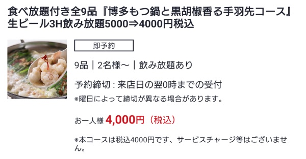 そんななかで見つけた、3時間飲み放題が付いた4,000円のもつ鍋コース。