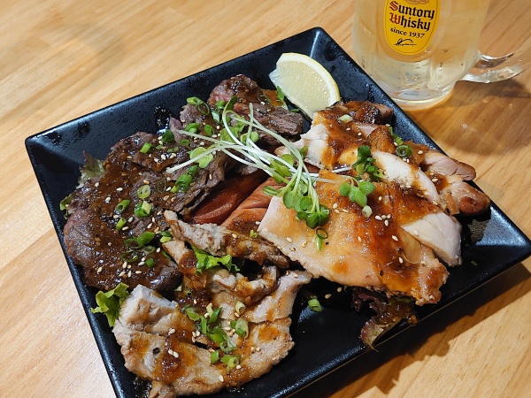 牛肉、豚肉、鶏肉、ウインナーのワンプレート。