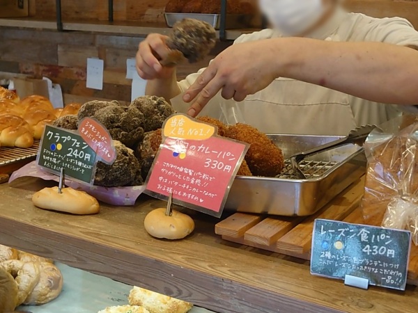 ショーケースの上のカレーパンは、人気ナンバーワンのお品。