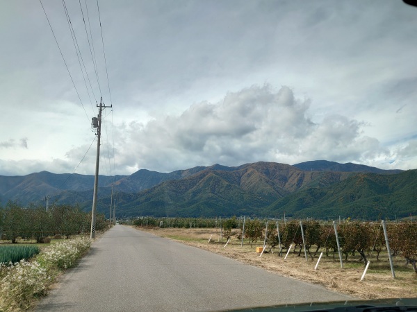 リンゴ畑の間を抜け、山のほうへ向けてクルマを走らせます。