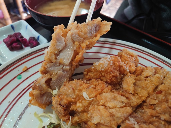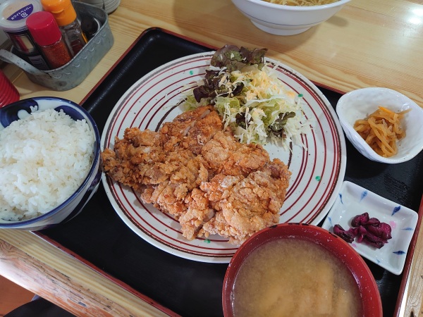 ラーメンを半分ほど食べ進んだところで、相棒が頼んだ山賊焼き定食ができてきました。