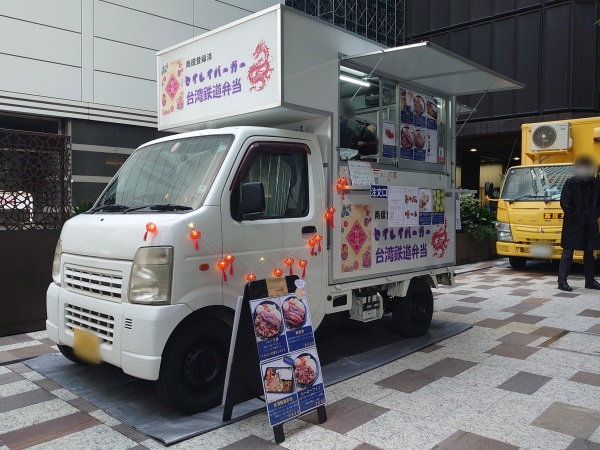 年末調整の書類を発送しようと郵便局へ行ったところ、思った以上に時間を取られてしまったので、キッチンカーでお弁当調達。