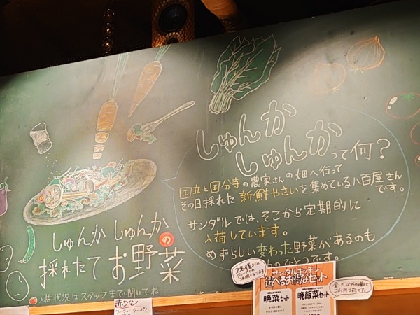 コチラの店は、国立にある地元野菜の直売所「しゅんかしゅんか」から入荷したとれたて野菜を使っているのが特色。