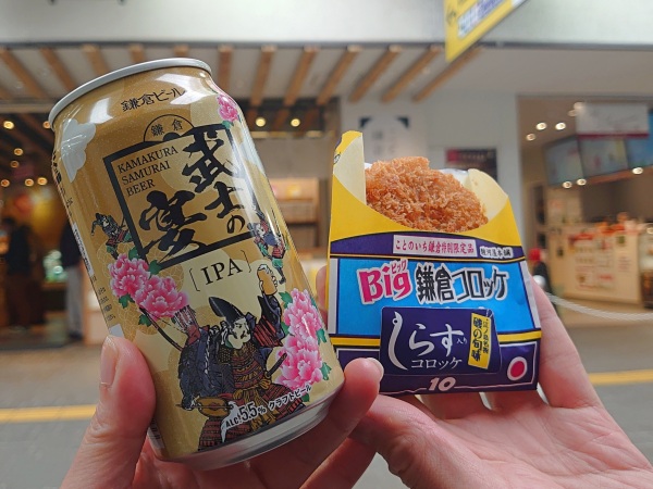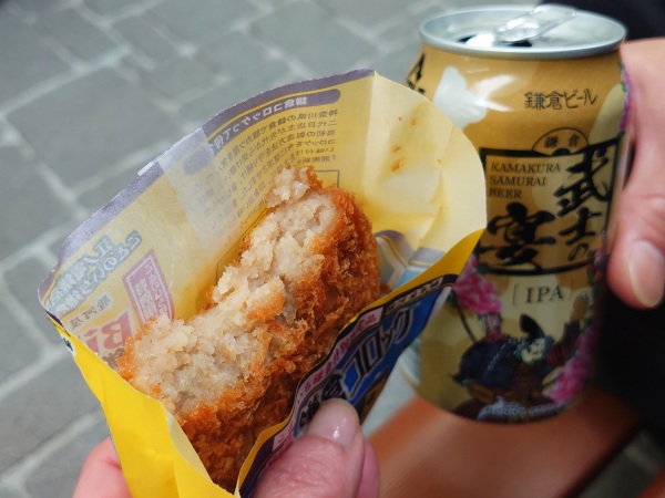 江ノ電鎌倉駅の駅ナカでしか手に入らない限定のコロッケと、ご当地のクラフトビールを手に入れました。