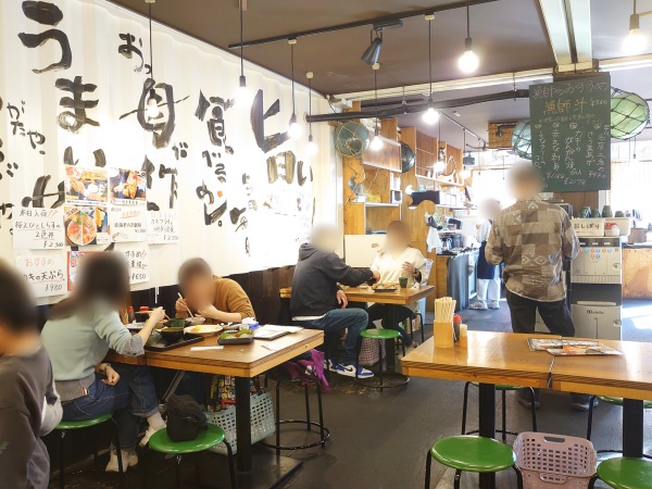 「食堂」の名のとおり、店内は丸椅子が並ぶ素朴な雰囲気。