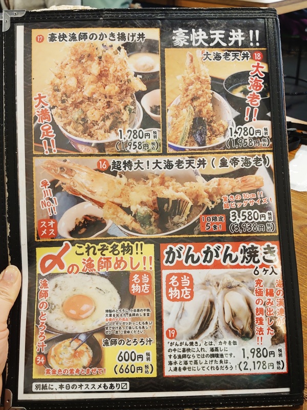 本格的に混みあう前に入ってしまいましょうと、相棒があらかじめマークしていた「漁師めし食堂」へ。