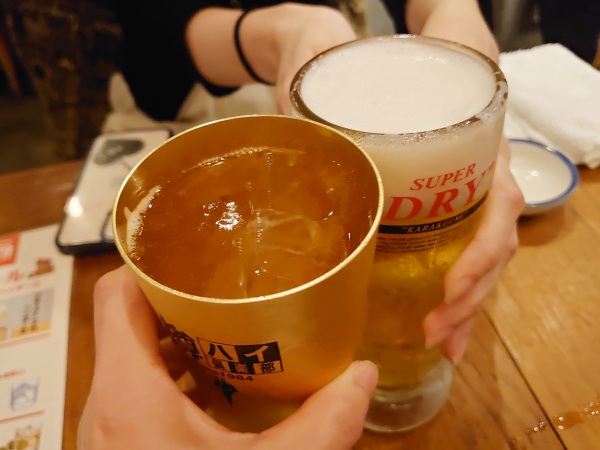 Wさんは生ビール、ワタクシはハイボールで乾杯。