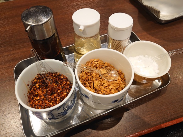唐辛子とフライドオニオンを加えると、甘めの味が引き締まって、おいしさ大幅アップ。