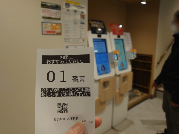 入ってすぐ右手の発券機で番号札を受け取って、指定された席へ進みます。