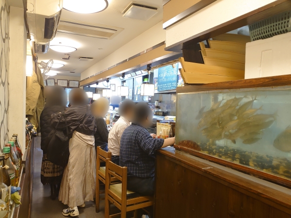 入ってすぐに生け簀もあるし、焼き鳥も魚も期待できそう。