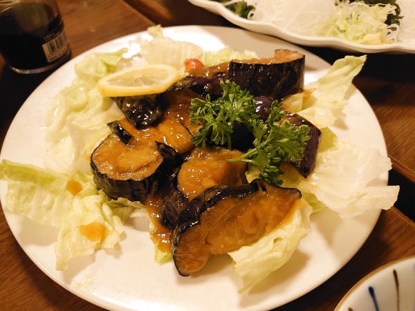 ワタクシがイメージしていたナス炒めとは違いますが、いったん揚げたナスと甘めの味噌が相まってうまうまちゃん。
