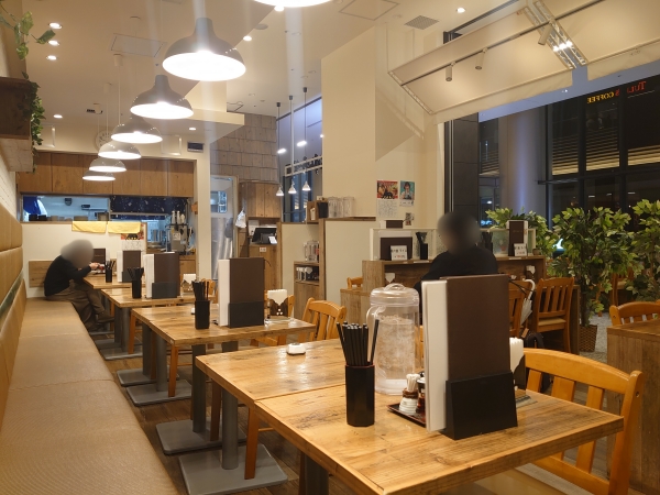 中央で区切られたカウンター風の席は、おひとりさまに落ち着けそうです。