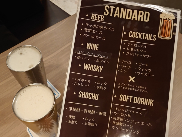 スタンダードコースで選べるビールは、サッポロ黒ラベル、空知エール、ペールエールの3種。