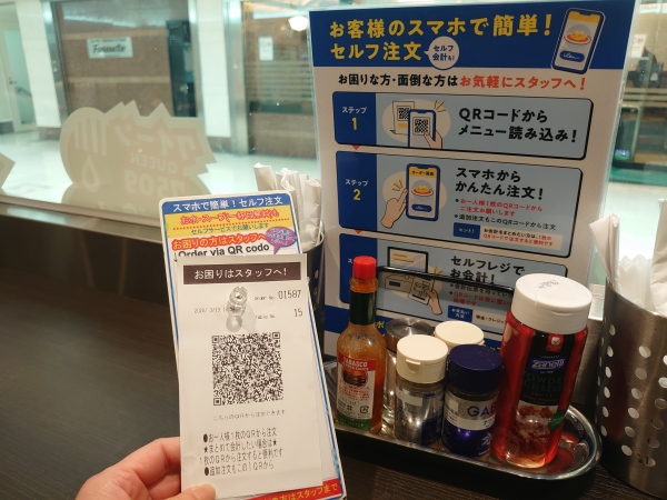 各席に用意されたQRコードをスマホで読み込んで、セルフ注文。