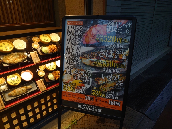 北口(モンダミン口)を出て目の前の「富士そば」がモーニングサービスをやっているのも気になりましたが、その先の看板に明かりが灯っているのに気付いて近寄ります。