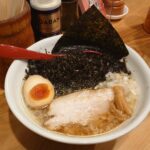 9月8日。岩海苔ラーメン@1,050円 この日は仕事に没頭していてランチに出そこなっただけでなく、定時が過ぎてからもキリが付くまでとついつい手を動かしてしまいました。 ゴスペルレッスン前に手短に食べられるといったら、うど …